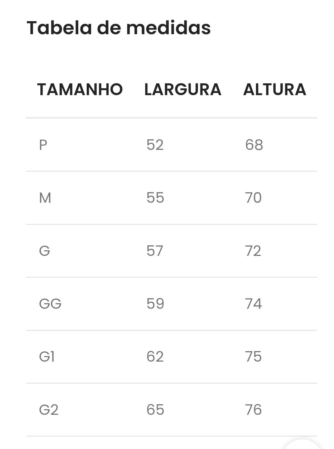 TAMANHO:  do P ao G2